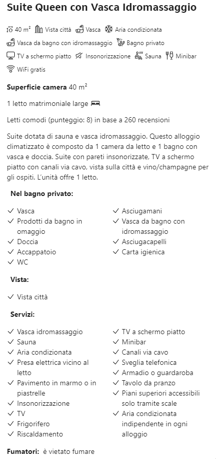 Ottimo in tutti i modi complimenti x la struttura e x il personale e x i servizi in camera camera 101 ottimo il servizio SPA. complimenti ancora X le vasche idromassaggio x la pulizia delle vasche e ancora complimenti x la sicurezza covid 19 grazie di tutto